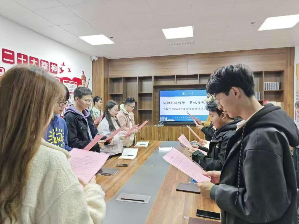 为深入开展宪法宣传教育,增进支部党员对宪法的认识和理解,引导学生党员进一步做到“尊法、学法、守法、用法”,11月29日,pg游戏电子模拟器卓越本科生党支部于学院327会议室开展“学习宪法,牢记使命”主题党日活动,党支部书记张馨月、党支部副书记刘平利及全体学生党员参会。