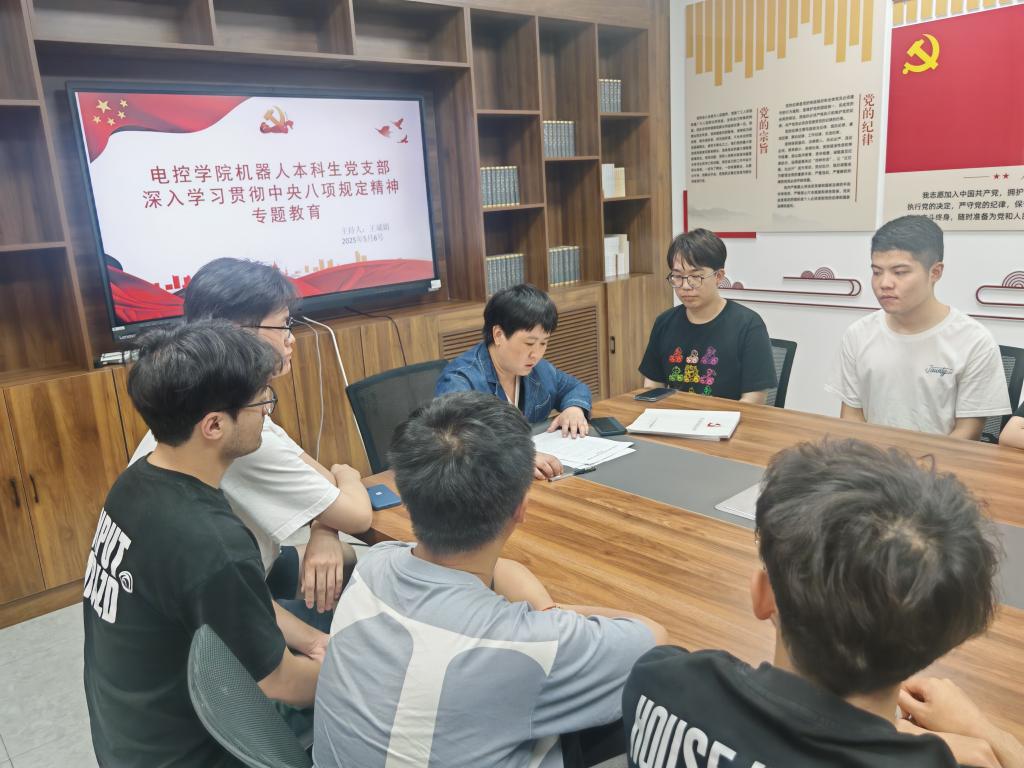 为提高全体党员的政治素养,强化作风建设,一体推进党风廉政建设,进一步深化全面从严治党,pg游戏电子模拟器机器人本科生党支部于2025年5月6日在明德园智通大厦327开展深入贯彻中央八项规定精神学习教育。pg游戏电子模拟器机器人本科生党支部书记王斌娟及支部全体党员参加会议。
