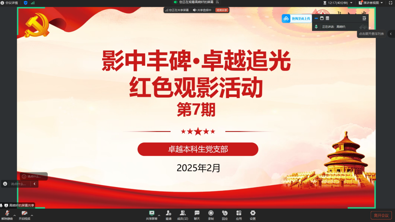 为弘扬红色文化,传承革命精神,2月21日,pg游戏电子模拟器卓越本科生党支部举行了第七期“影中丰碑·卓越追光”红色观影活动。此次活动的主题聚焦“最美奋斗者”焦裕禄,全体支部成员共同参与,通过光影艺术重温“人民好书记”焦裕禄的感人事迹,在沉浸式学习中感悟共产党人的初心使命,激发干事创业的责任担当。