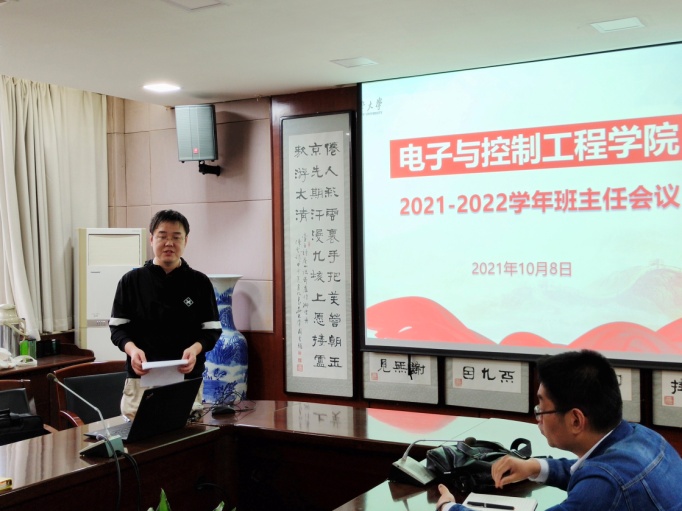 为推动班主任队伍建设,促进班主任育人作用充分发挥,进一步提高班主任工作针对性和实效性,pg游戏电子模拟器于2021年10月8日下午在南校区学术交流中心第五会议室召开2021-2022学年班主任工作会议。全体学院领导班子成员、学办辅导员、各年级班主任及思政班主任参加会议,会议由院党委副书记赵丹主持。