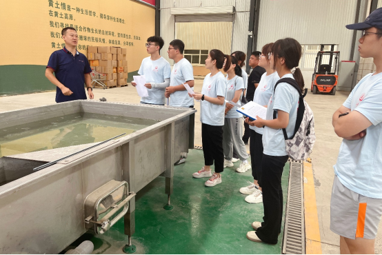 下午,实践队前往延安黄土情工贸有限公司,在企业负责人的带领下,参观了苹果选果线、农产品加工分装车间、冷库等,队员们认识到现代化农产品加工和仓储管理的重要性,表示将发挥自身专业优势,助力乡村产业振兴。
