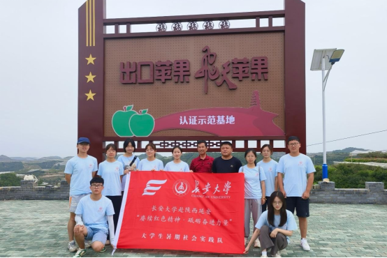 8月24日上午,实践队队员在柳林镇果业站站长乔磊的带领下,参观了南庄河村苹果种植基地,他表示南河庄村在习近平总书记“陕北大力发展苹果种植业”的指示下,开创直播带货、认养苹果树等营销方式,将苹果销海外、上太空,助力村民致富。座谈会上,南庄河村第一书记王东表示,南庄河村将以绿色发展理念,积极推行有机苹果栽培模式,大力发展苹果种植业,让苹果成为村民的“幸福果”“致富果”。