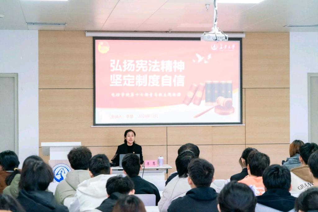 为深入学习宣传贯彻党的二十大精神,大力弘扬宪法精神,提升法治意识和法治素养,pg游戏电子模拟器第十七期青年马克思主义者培养工程(青马班)于12月5日下午在北校区明德园智通大厦216会议室开展了“弘扬宪法精神·坚定制度自信”主题团课。此次团课由院团委书记李慧主讲,第十七期青马班全体学员参加。
