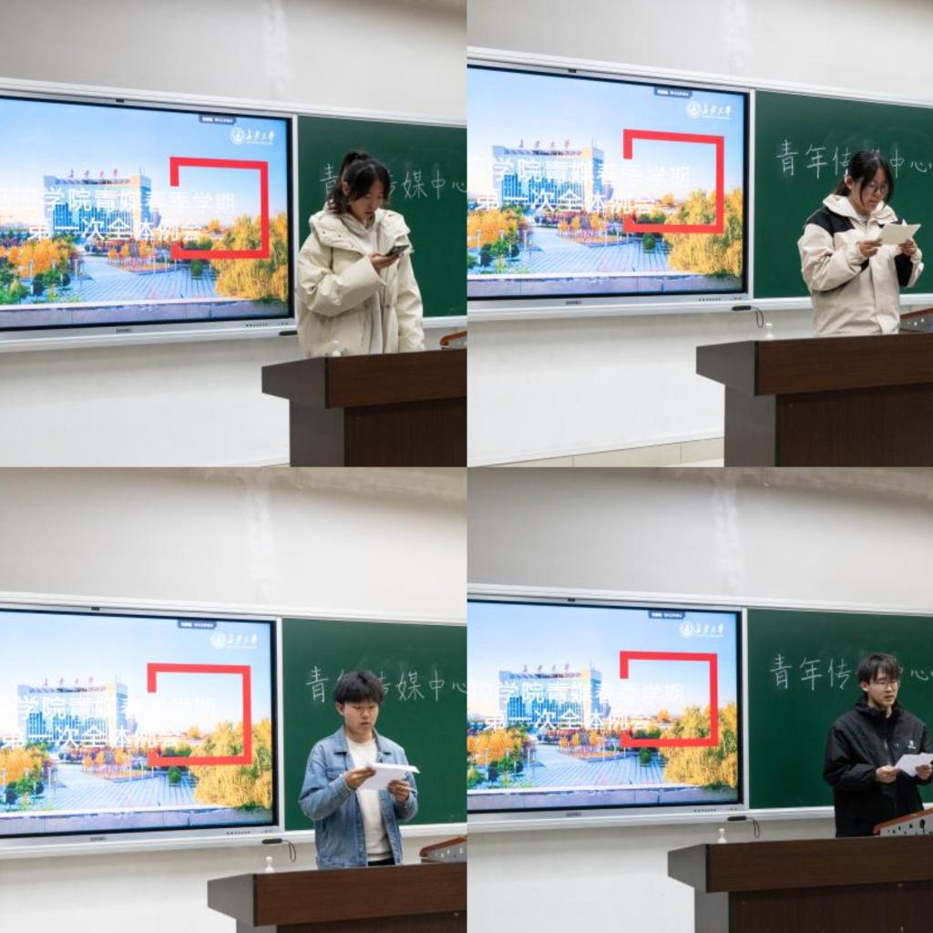 为进一步加强新学期青年传媒中心(以下简称“青媒”)的工作能力以及团队组织力和凝聚力,推动工作顺利开展,pg游戏电子模拟器青媒于3月14日晚在北校区wm1105开展第一次全体例会,学院党委副书记高婷婷、团委书记李慧、青年传媒中心指导老师王佩佩及青媒全体成员参会。会议由秘书处志愿者潘祖颖主持。