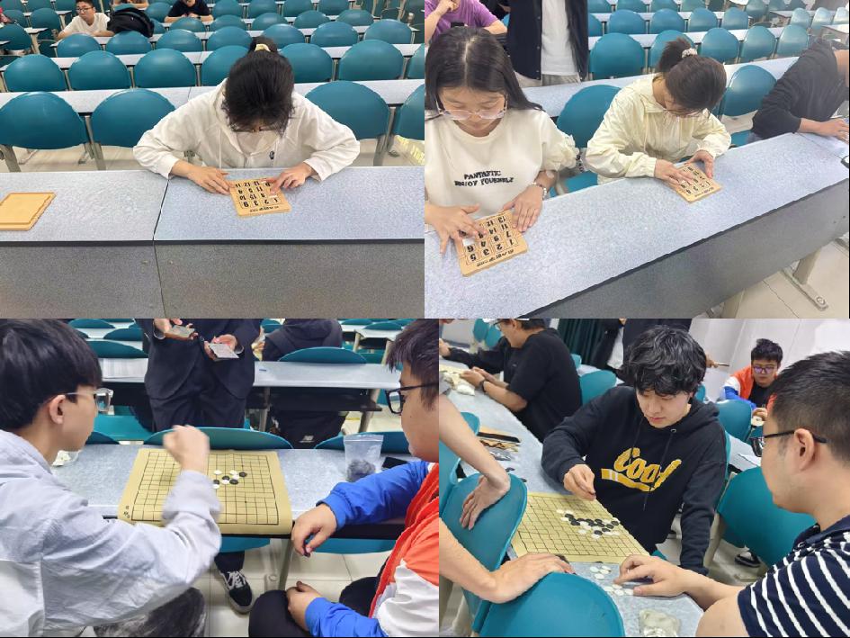 4月14日中午,九宫归序数字华容道决赛在北校区WM1102教室举行。21位初赛晋级选手灵活移动数字方块、快速思考解题策略,最终前6名脱颖而出并获得奖品。4月14日晚,五子争锋决赛在WM1102教室举行。棋手们凝神落子,黑白棋子纵横交错,在攻防博弈中尽显策略智慧,既为爱好者搭建交流平台,也展现了传统棋类的独特魅力。