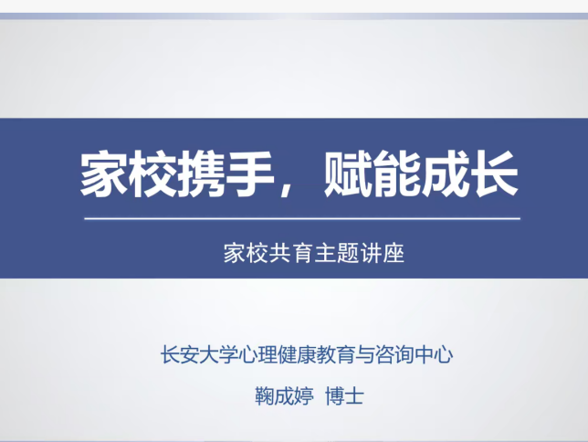 为进一步加强家校沟通,凝聚育人合力,帮助2026届本科毕业生明晰就业形势,做好职业规划,6月12日19:00,pg游戏电子模拟器在北校区明德园智通大厦1号楼319会议室开展了2026届本科生毕业生家长会暨就业动员大会。学校心理中心教师鞠成婷、2022级辅导员李慧及260余名家长相聚云端,会议由李慧主持。