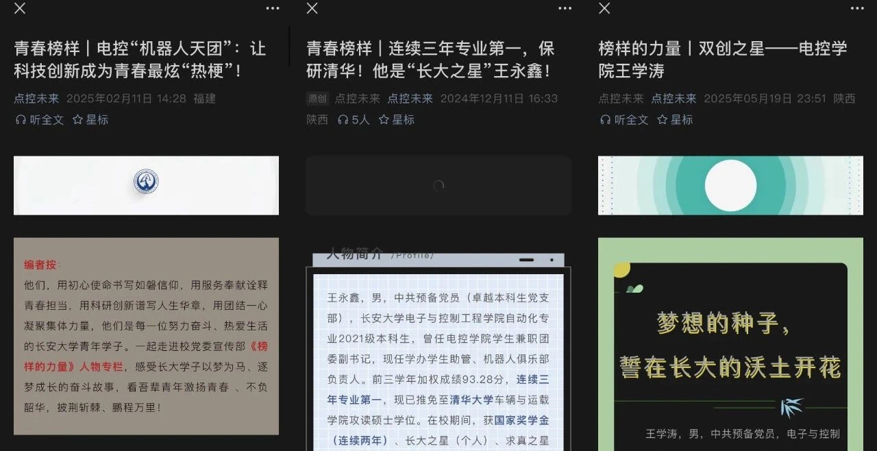 举办“电控青年说——优秀学生分享会”,邀请国家励志奖学金获得者、优秀毕业生代表等青春榜样,分享自身“诚信立学、感恩前行”的奋斗故事。学院微信公众号平台设立“青榜样”专栏,推出国家奖学金、国家励志奖学金获得者风采展,发挥朋辈示范引领作用,激励学生见贤思齐,以诚信为基、以奋斗为笔,书写属于自己的青春篇章。