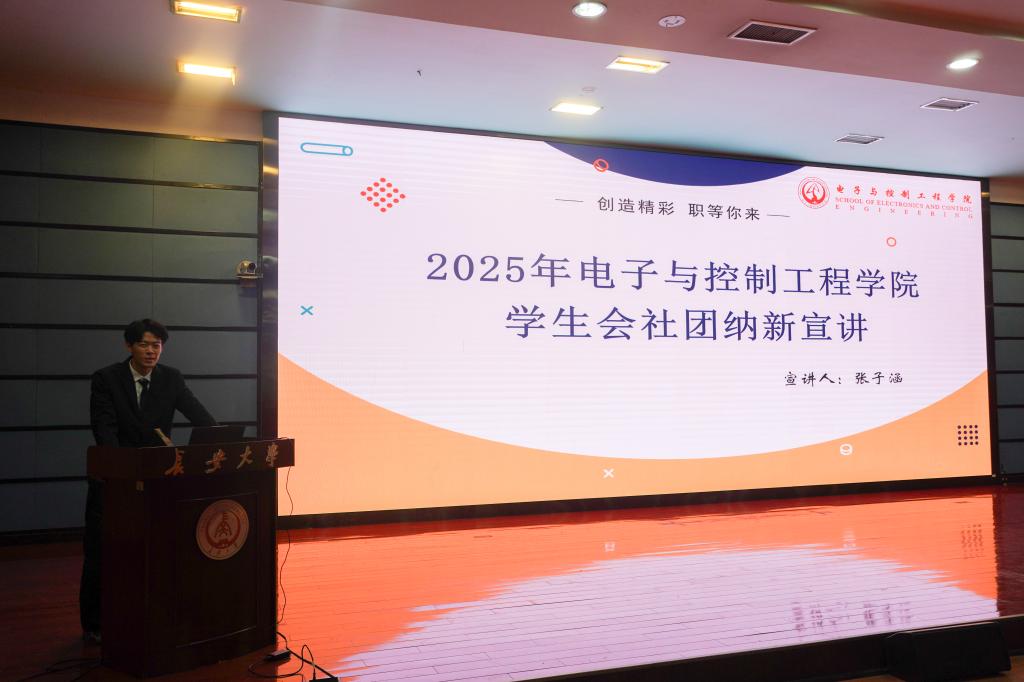 9月16日中午,pg游戏电子模拟器2025年团学组织与学生社团纳新宣讲会在北辰楼会议中心二楼报告厅举行。学院团委副书记胡佳瑞,2025级新生辅导员孙超、吴耀东,团学组织与学生社团主席,2025级本科新生参加会议,会议由学院学生会执行主席张子涵主持。