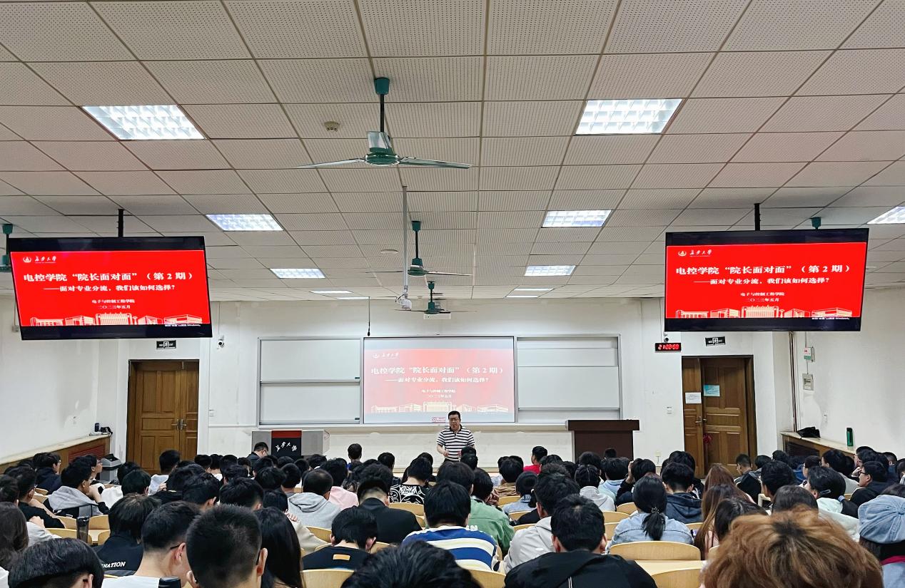 针对2022级自动化类本科生,闫茂德以“面对专业分流,我们该如何选择?”为题做了专业分流指导讲座。闫茂德从学院概况、专业建设与人才培养、学科建设与科研服务、培养成效与升学就业等四个方面进行了详细讲解,同时耐心解答了同学们在专业发展、课程学习和升学就业等方面存在的问题和疑惑。