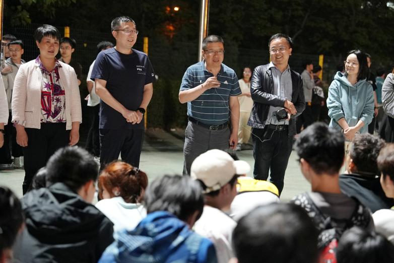 4月17日晚,pg游戏电子模拟器院长闫茂德、院党委副书记李阳来到北校区朝晖体育场慰问学院备战校运动会的全体辅导员、运动员和工作人员。