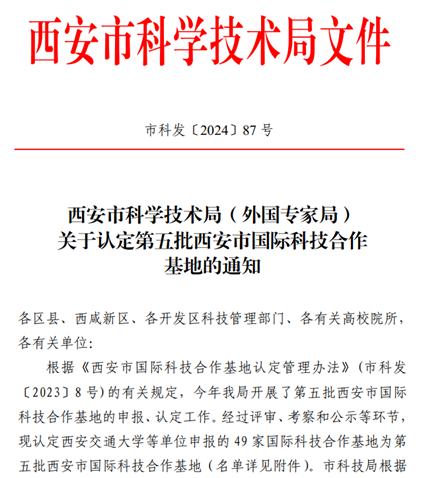 近日,西安市科学技术局(外国专家局)发布了《关于认定第五批西安市国际科技合作基地的通知》。经评审、考察和公示等环节,pg游戏官网惠飞教授牵头申报的交通信息与控制国际科技合作基地被认定为西安市国际科技合作基地。